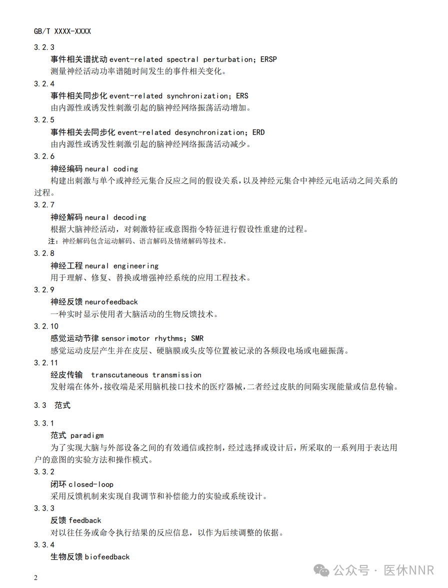 这份标准不只是给“脑机接口医疗器械”下了一个定义,更是搭建了一整套术语体系,覆盖了设备结构、信号形态、解码算法、控制范式、安全要求等多个环节。