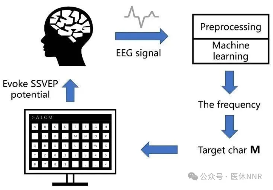 辅助沟通与环境控制:SSVEP已经成功用于脑控拼写系统(如虚拟键盘输入文字)、拨号打电话、控制电视空调等智能家居设备,以及驱动电动轮椅等。对于高位截瘫、运动神经疾病(ALS)患者,注视屏幕上不同频率闪烁的图标即可实现“意念选字”或控制家电开关,大大提高了生活自理能力。这类应用在市场上有较大需求,一些初创公司也在开发基于SSVEP的脑控打字软件和物联网控制接口。