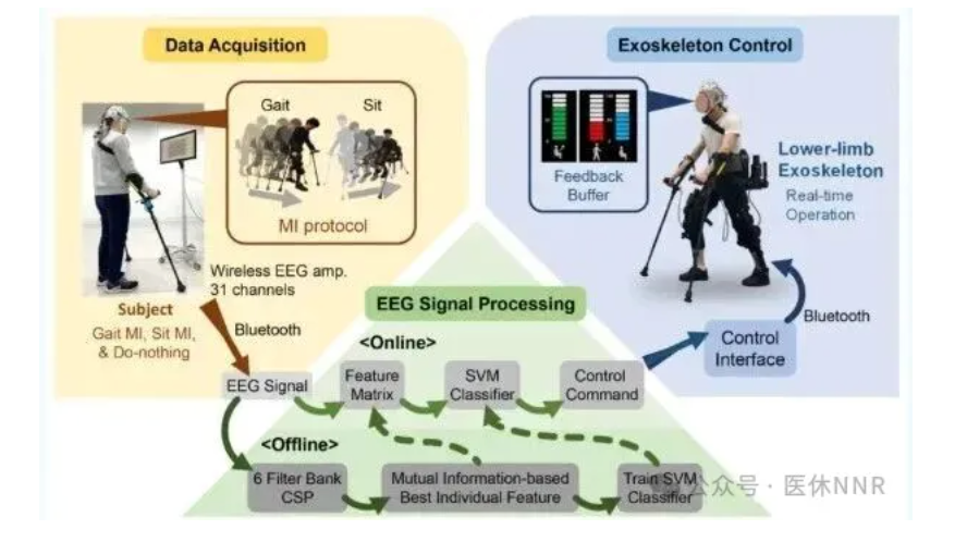 比如:上肢主被动康复训练仪(含电刺激)、手功能康复训练机器人(气动手)、下肢反向康复训练系统、下肢外骨骼、踝关节训练仪、仿生手/仿生腿这类,核心卖点都是——帮偏瘫/截瘫病人把“动起来”的功能一点点练回来。在这些场景里,MI能把“我想动”变成设备动作,本身就是疗效故事的一部分,也方便和康复科的科研、随访体系打通。