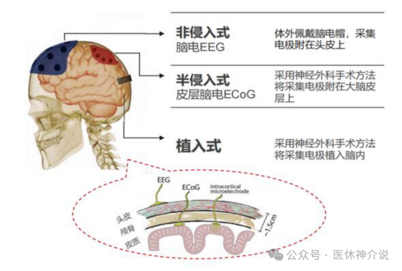 脑机接口技术根据信号采集方式的不同,主要分为非侵入式、侵入式和半侵入式(或称介入式)三大路径。
