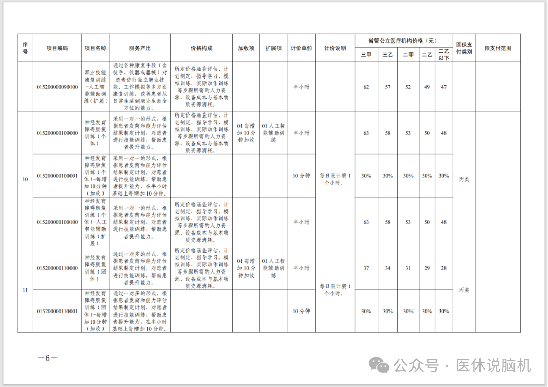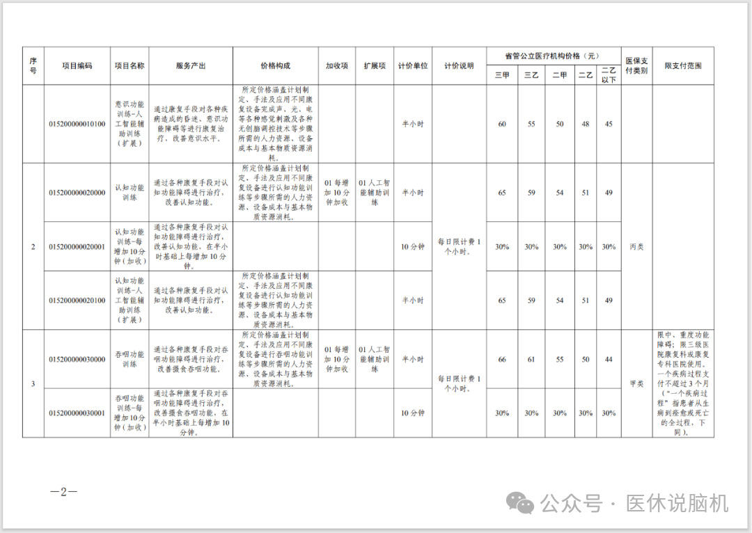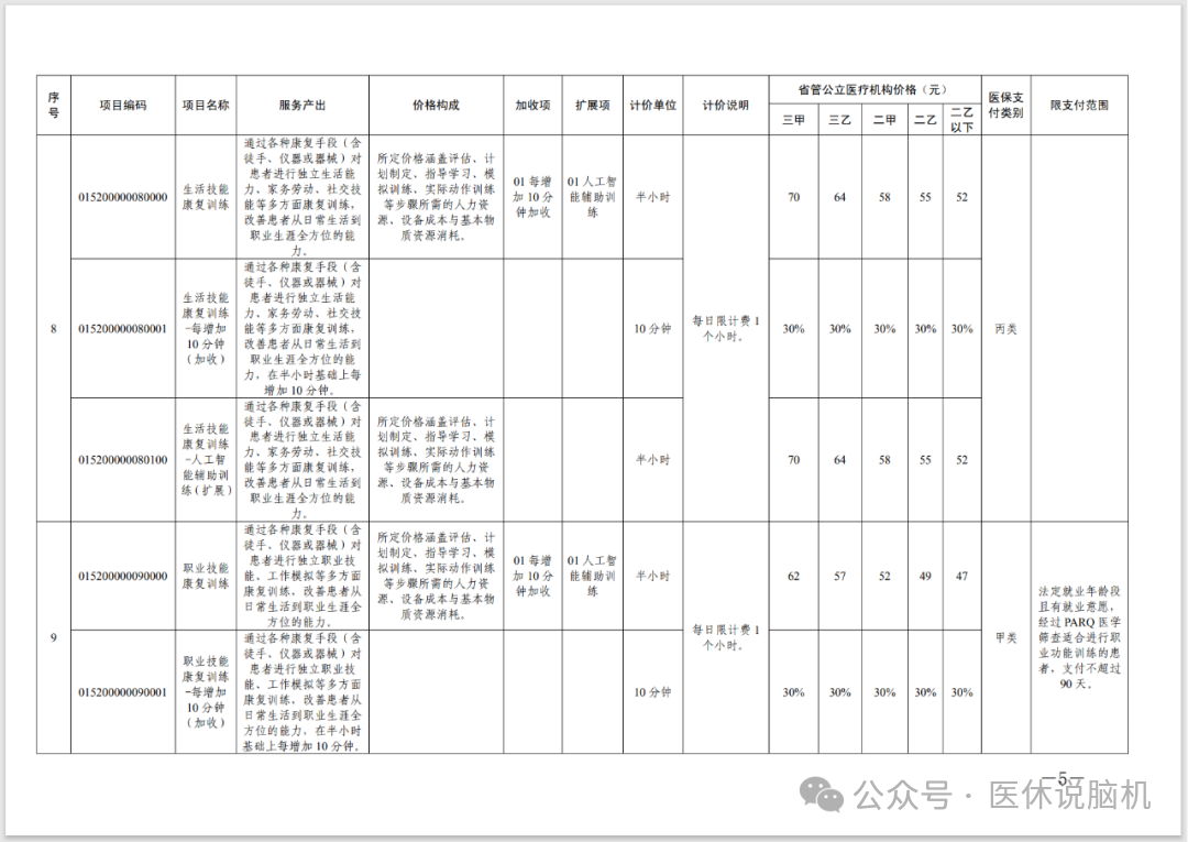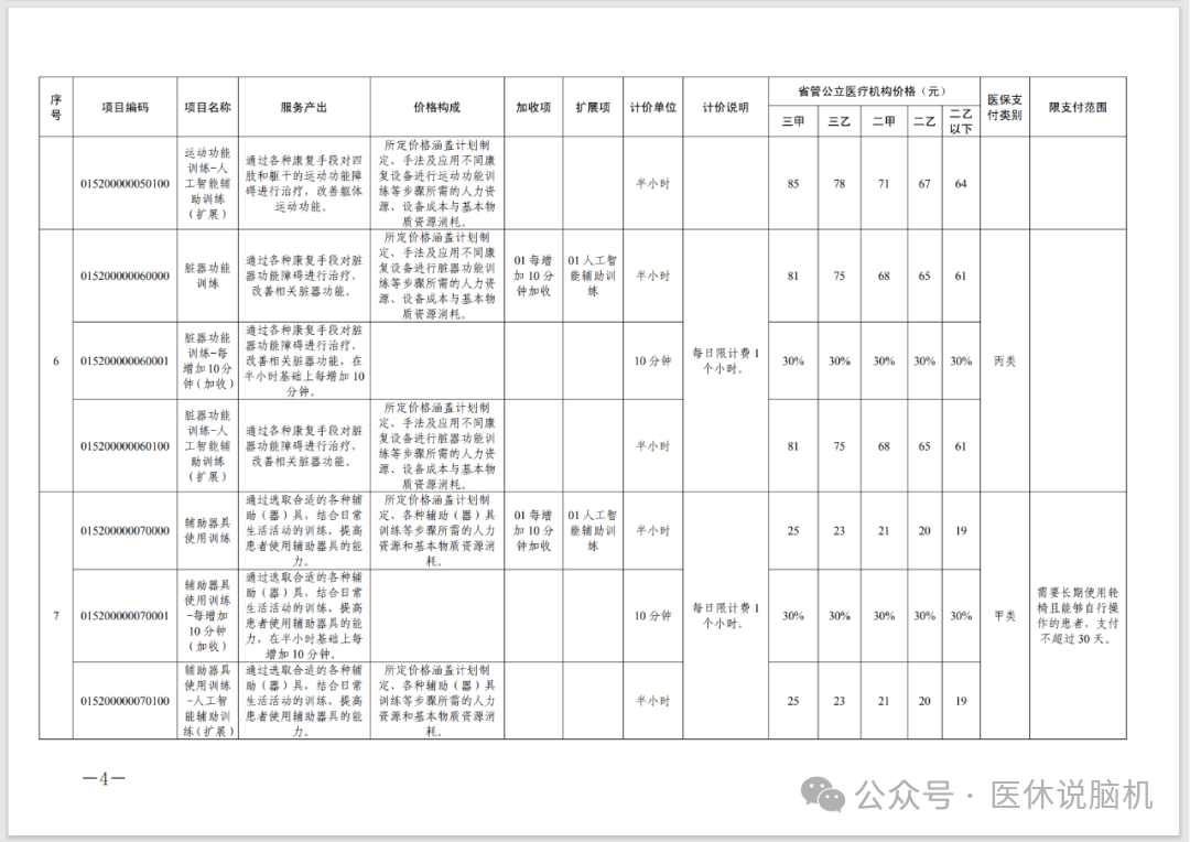 综合考虑临床需要、基金支付能力等因素,明确康复类、精神治疗类、放射治疗类、体被系统医疗服务价格项目医保支付类别,全省统一执行。
