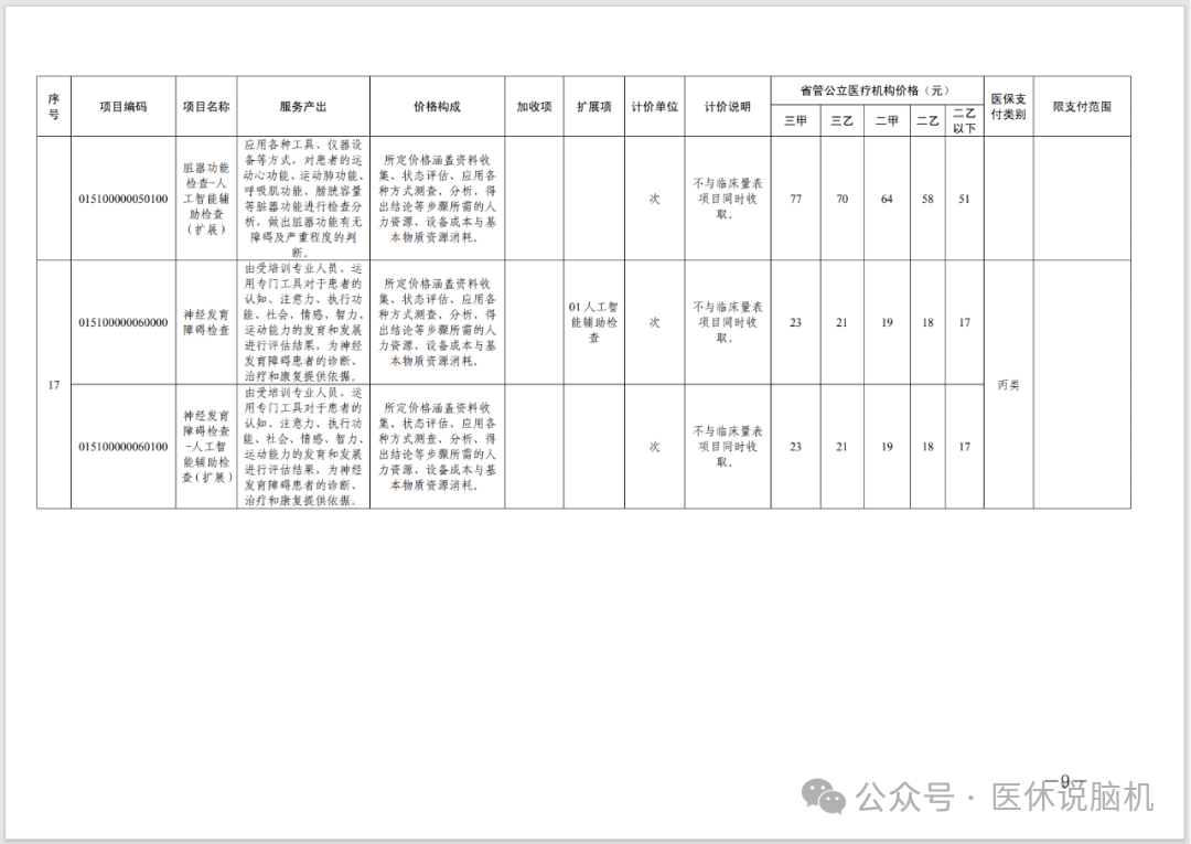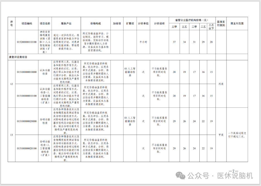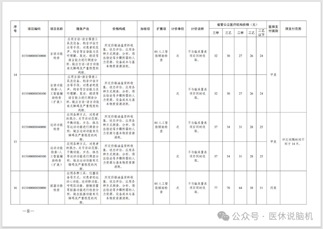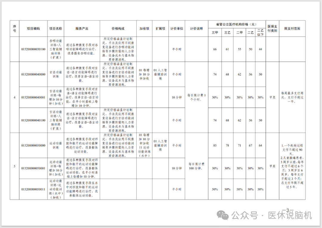综合考虑临床需要、基金支付能力等因素,明确康复类、精神治疗类、放射治疗类、体被系统医疗服务价格项目医保支付类别,全省统一执行。