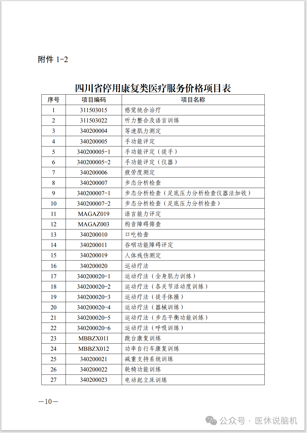 (二)整合精神治疗类医疗服务价格项目10项,停用原执行价格项目24项(详见附件2)。