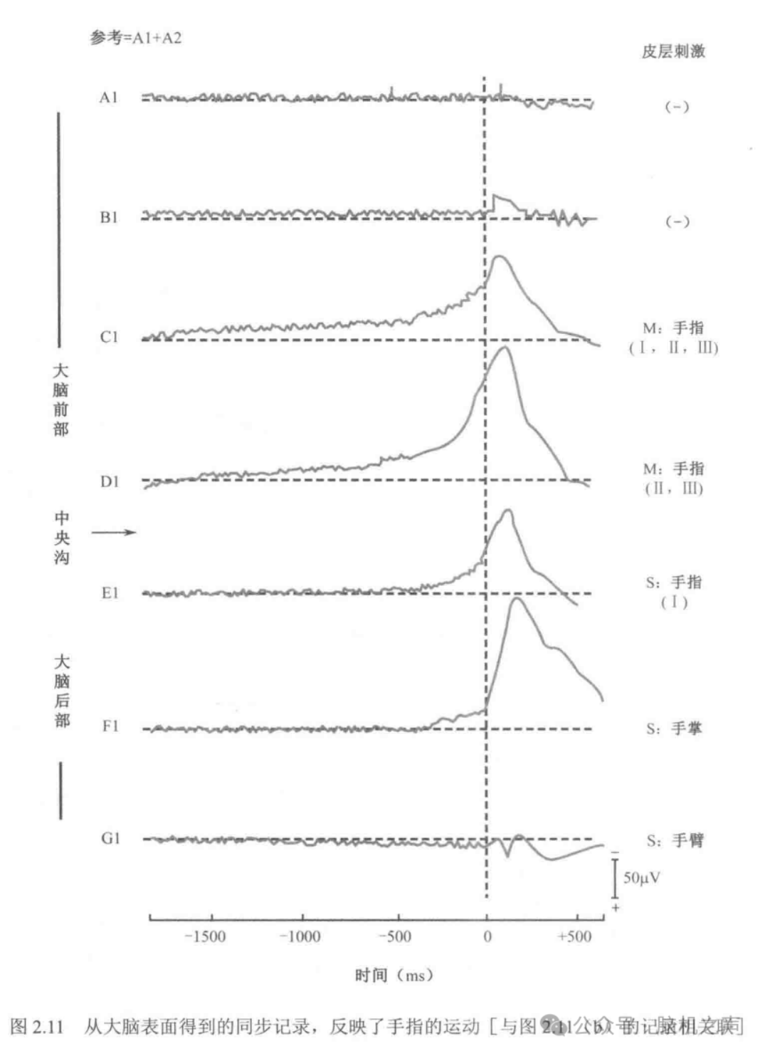 图里用的是运动相关电位(MRP,Movement-Related Potential)做例子。MRP其实不神秘,就是人在准备和执行运动(比如动手指)前后,大脑运动相关区域出现的一类事件相关电位变化。关键不在这个波形具体长什么样,而在它“空间上有多挑剔”。当电极间距做到1 cm这种级别时,你会看到一件很直白的事:有的电极位置对手指运动反应很强,有的几乎不响应;甚至同样是手指,换成不同手指,强响应的电极点也会变。换句话说,在大脑表面,“哪里在干活”往往是相对局部、相对明确的,它并不是一动手指,全头皮都跟着一起嗨。