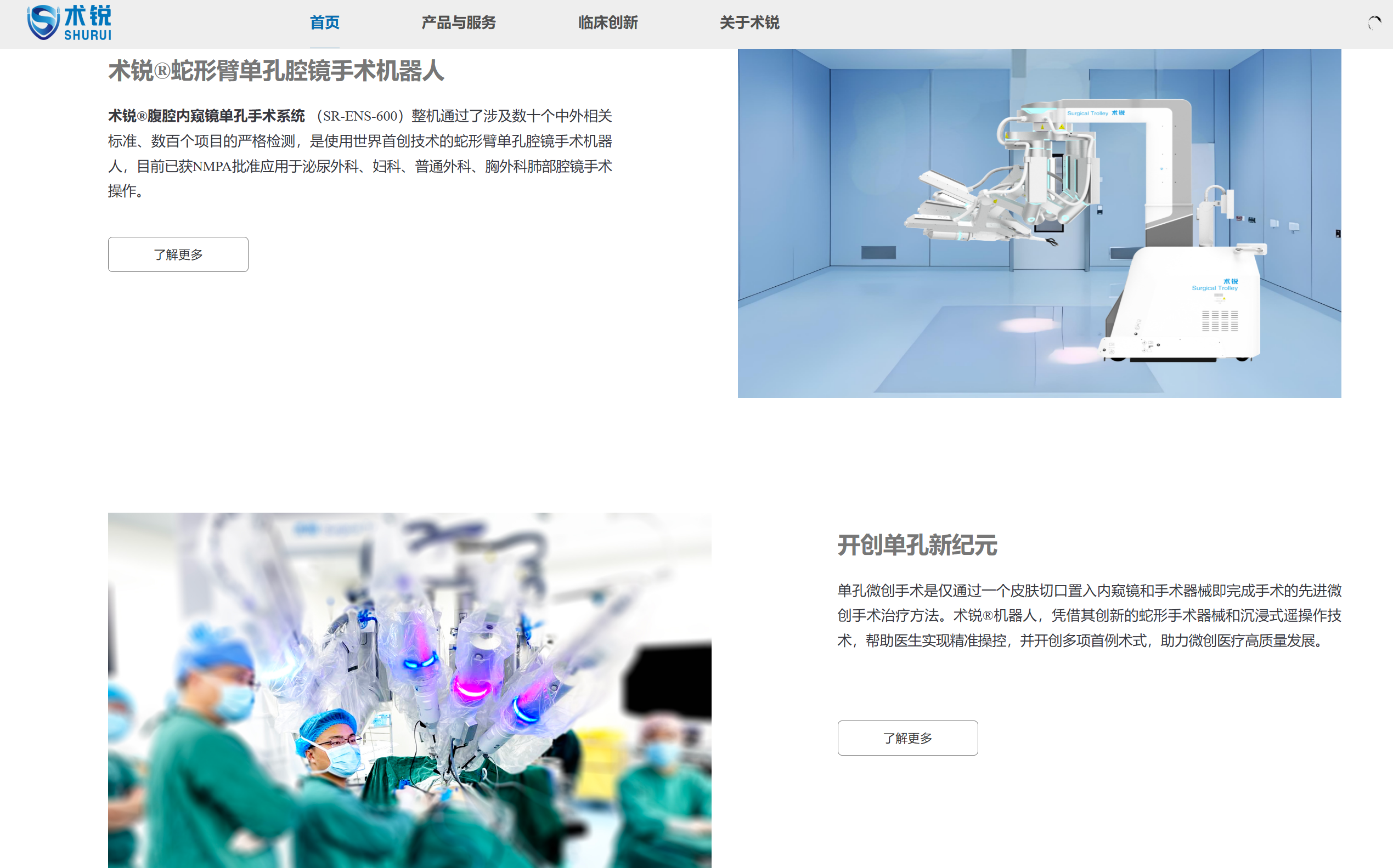 术锐机器人的旗舰产品——术锐®单孔腔镜手术机器人,是中国首款获批上市的单孔手术机器人系统,有效填补了国内市场空白。国家药品监督管理局评价该产品"采用国际首创、拥有自主知识产权的创新技术,具有运动范围广、负载能力强和可靠性高等技术优势",并将其与全球领先的单孔手术机器人系统并列为全球第二款商业化的单孔腔镜手术机器人。