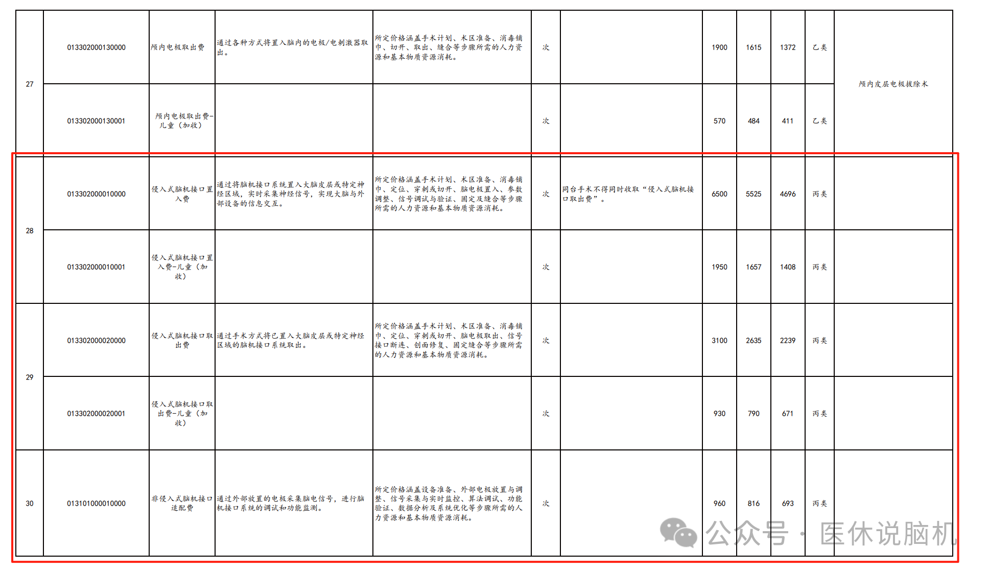 侵入式脑机接口置入费(儿童)部分,可加收最高1800;