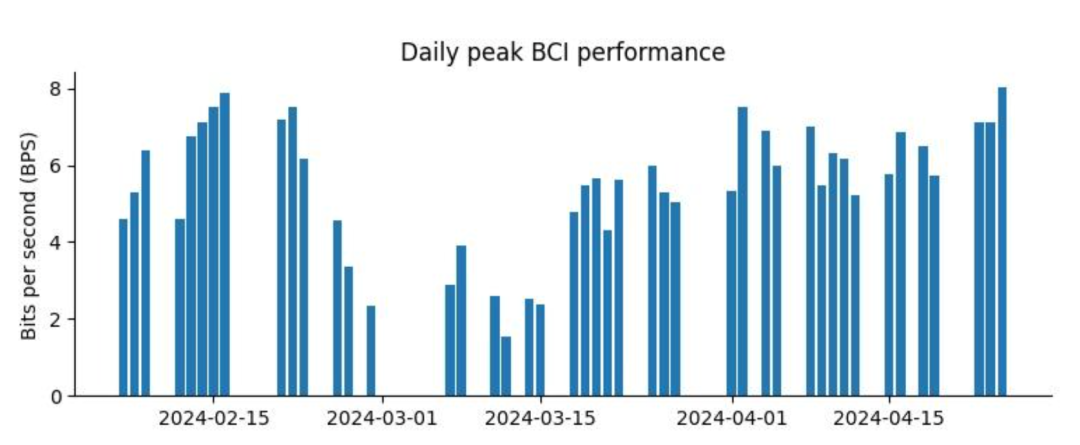 但Neuralink的工程师团队并没有放弃,他们通过后台直接推送了一次固件更新,改进了“信号记录”算法。这次软件层面的升级,极大地提升了剩余15%电极的灵敏度。奇迹发生了,经过“软修补”后的系统,其每秒比特数(BPS)的性能表现甚至超过了电极完好时的水平。