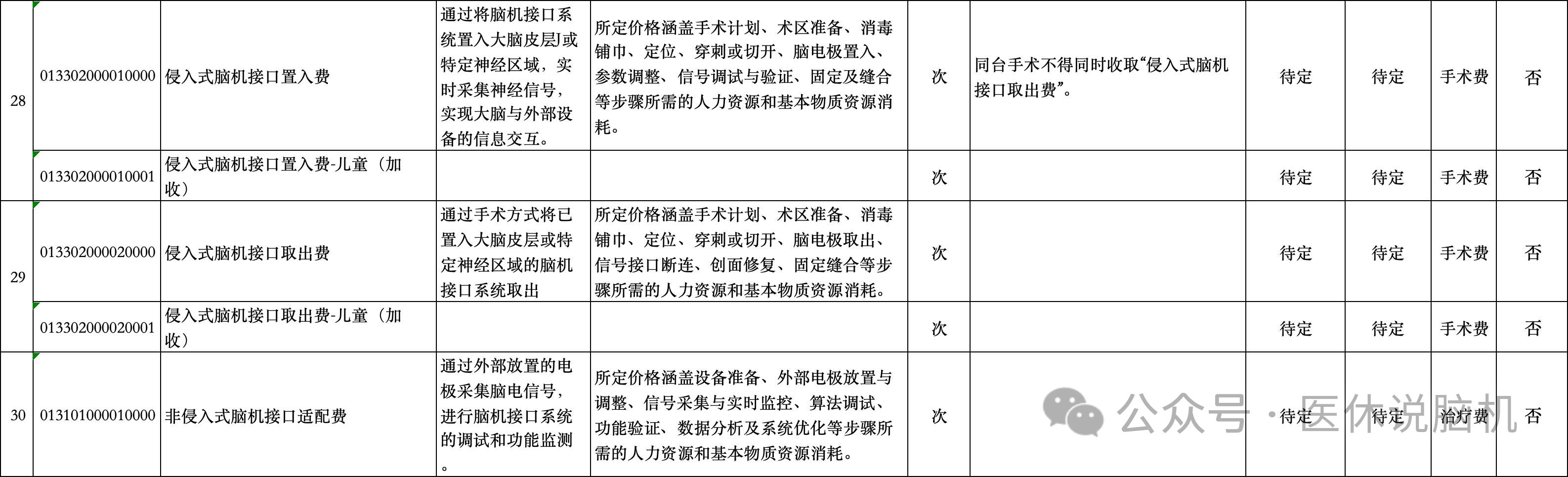 侵入式脑机接口置入费,最高可收6000; -