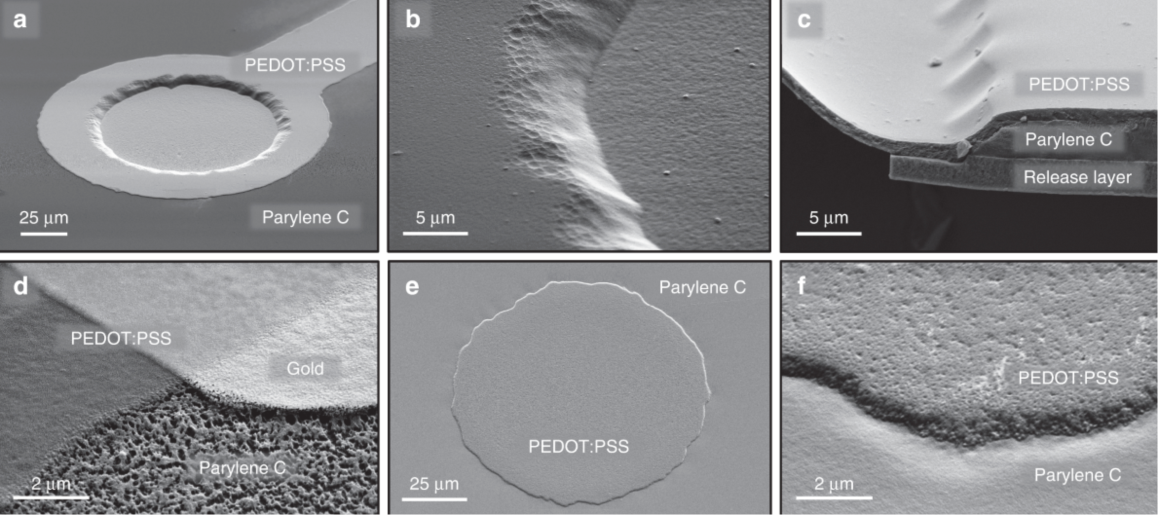典型路线包括贵金属粗化与氧化物涂层(如铂黑、氧化铱、氮化钛等),以及导电聚合物与碳材料涂层(如 PEDOT:PSS、碳纳米管、石墨烯等)。这些涂层的共同目标是:增大有效表面积,降低界面阻抗,提高电荷注入能力,扩大安全电化学窗口,从而提升记录信噪比与刺激效率。微纳形貌与表面能的变化,也会影响蛋白吸附与细胞黏附行为,进而对慢性炎症反应产生影响。