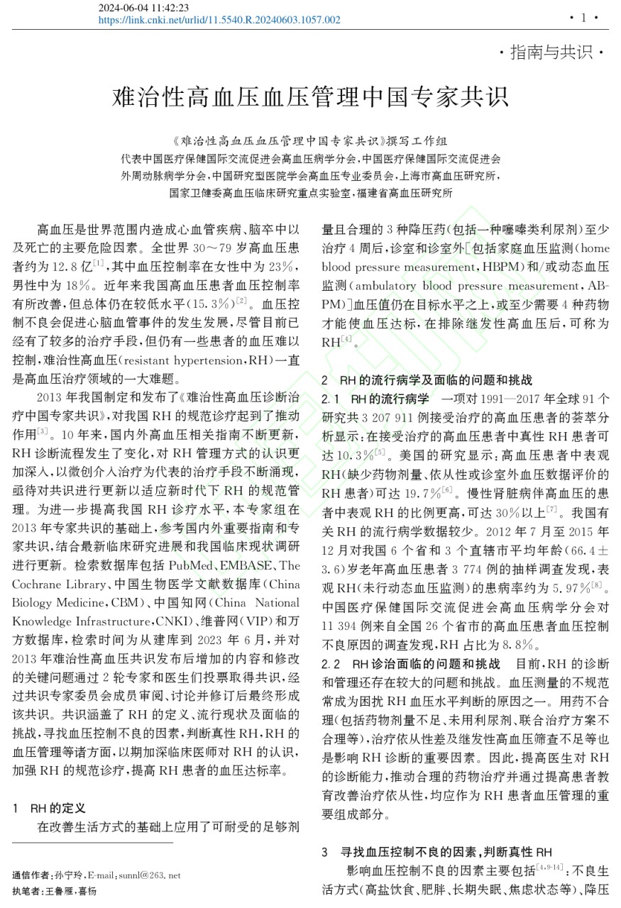中华高血压杂志ChineseJournalofHypertensionISSN1673-7245,CN11-5540/R《中华高血压杂志》网络首发论文题目:难治性高血压血压管理中国专家共识作者:中国医疗保健国际交流促进会高血压病学分会,中国医疗保健国际交流促进会外周动脉病学分会,中国研究型医院学会高血压专业委员会,上海市高血压研收稿日期:究所,国家卫健委高血压临床研究重点实验室,福建省高血压研究所,王鲁雁,网络首发日期:喜杨引用格式:2024-04-272024-06-04中国医疗保健国际交流促进会高血压病学分会,中国医疗保健国际交流促进会外周动脉病学分会,中国研究型医院学会高血压专业委员会,上海市高血...